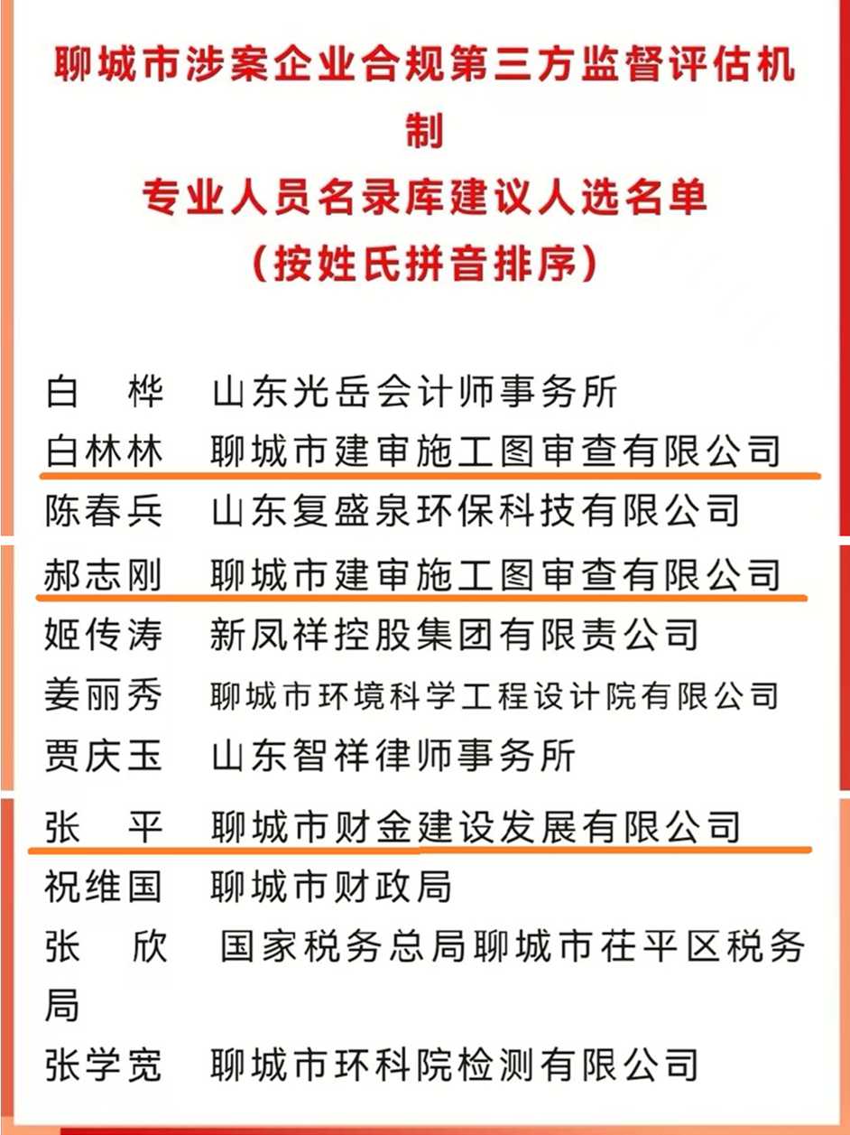 近日,聊城市涉案企業(yè)合規(guī)第三方機(jī)制管委會(huì)公示聊城市涉案企業(yè)合規(guī)第三方監(jiān)督評(píng)估機(jī)制專業(yè)人員名錄庫人員名單,我集團(tuán)審計(jì)法務(wù)部張平、圖審公司郝志剛、白林林三位同志經(jīng)公開公告、個(gè)人報(bào)名、組織推薦、管委會(huì)研究、擬入庫公示等程序,確定為聊城市涉案企業(yè)合規(guī)第三方監(jiān)督評(píng)估機(jī)制專業(yè)人員。