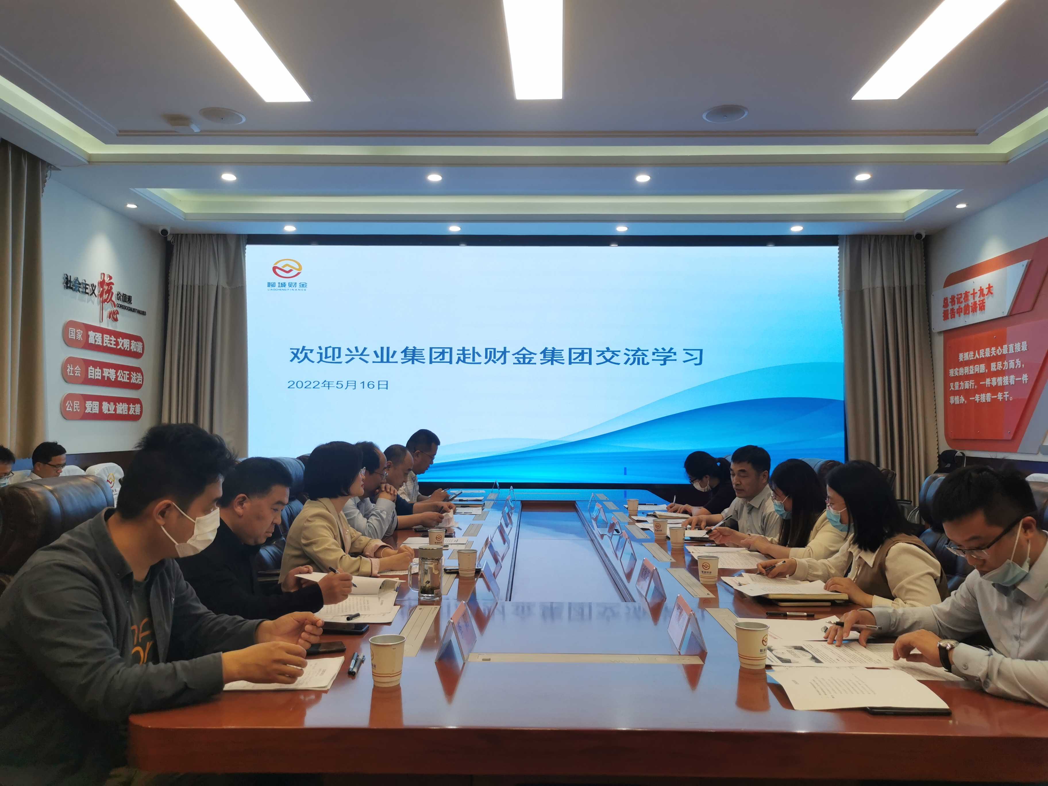 5月16日,聊城興業(yè)控股集團(tuán)副總經(jīng)理吳春光帶隊赴聊城財金集團(tuán)開展交流學(xué)習(xí)活動。財金集團(tuán)黨委副書記、董事、總經(jīng)理于雪格,副總經(jīng)理馬保強及相關(guān)部室、子公司負(fù)責(zé)人參加座談。
